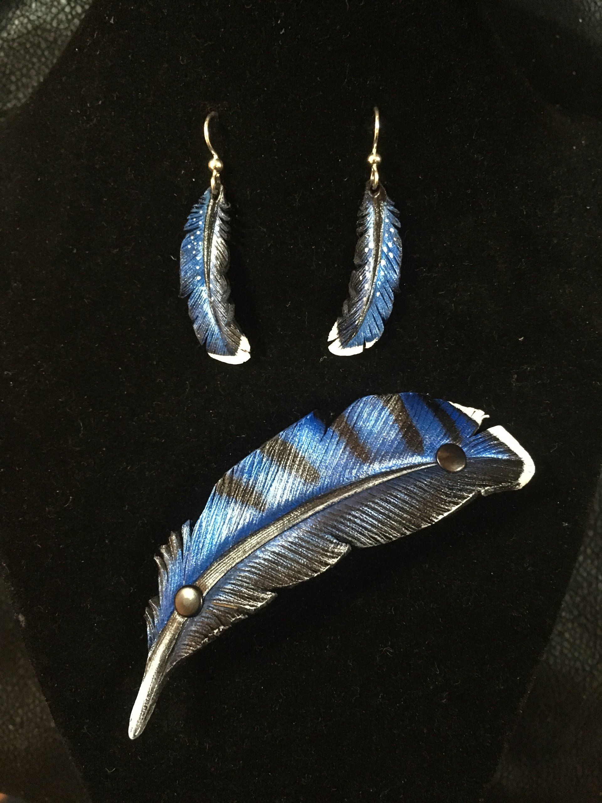 Leather Molded Earrings and Hair Barrettes Designed to Resemble Real Bird Feathers